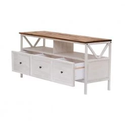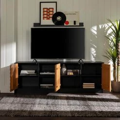 58 in. Coastal Oak Rattan and Wood Modern 2-Door TV Stand for TVs Up to 60 in. by Welwick Designs