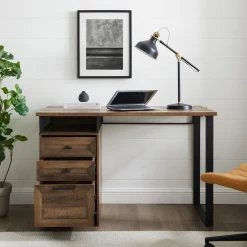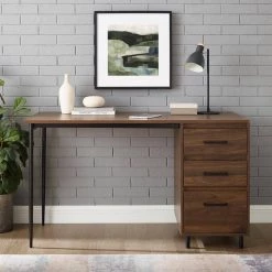 52 in. Rectangular Dark Walnut Wood and Metal 3-Drawer Computer Desk by Welwick Designs