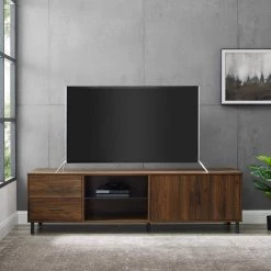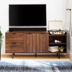 55-78 in. English Oak Wood Modern Adjustable TV Stand for TVs Up to 82 in. by Welwick Designs