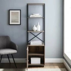 64 in. Gray Wash Wood and Metal 3-Shelf Accent Bookcase with 1-Door by Welwick Designs