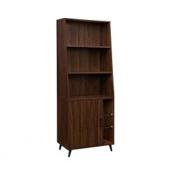 72 in. Dark Walnut Wooden 5-Shelf Modern Bookcase Hutch with Cabinet by Welwick Designs