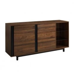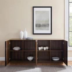Dark Walnut Wood and Metal Accent Modern 4-Door Sideboard by Welwick Designs