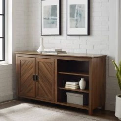 Dark Walnut Wood Sideboard with Angled Groove Doors by Welwick Designs