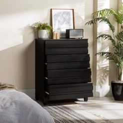 Priya 4-Drawer Black Solid Wood Modern Panel Dresser by Welwick Designs