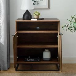 Reclaimed Barnwood and Metal Contemporary Asymmetrical 2-Door Accent Cabinet by Welwick Designs