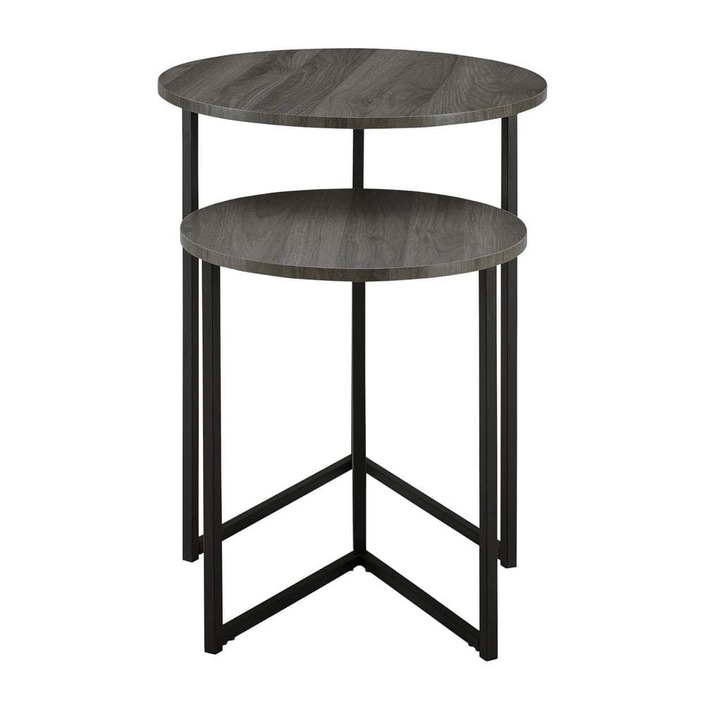 Point your style in the right direction with these V-leg nesting side tables. The dynamic metal legs are made of powder coated metal while the table top is constructed out of warp-resistant MDF and finished with a high-quality laminate. Industrial design gets a geometric update with these two-tone, angled accent tables. Flexibly use these nesting tables together or separately.