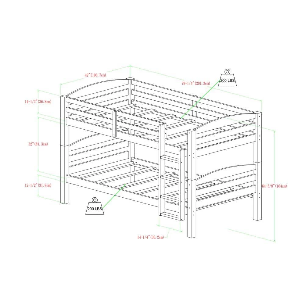 - Dimensions: Bunk bed: 65 in. H x 79 in. L x 42 in. W, 113 LBS Trundle: 10 in. x 74 in. L x 42 in. W, 50 LBS