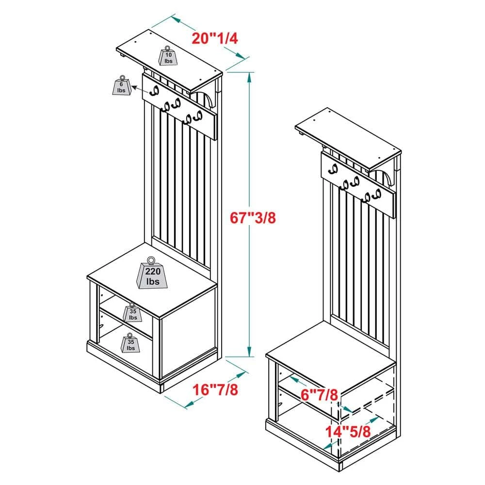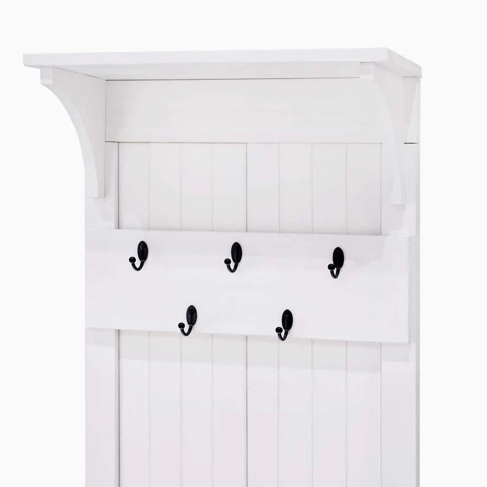 Tap into your proclivity for natural beauty with this responsibly-sourced solid pine wood hall tree. A storage-savvy ode to rustic interiors with grooved wood detail, this multifunctional piece will fit perfectly in the empty alcoves of your hallway, entryway, or mudroom. Doubling as a bench to lace up your shoes, the open cubbies of this hallway hub offer refuge for stray sneakers and seasonal gear. Five metal hooks beckon for backpacks and bags to hang for an easy, grab-and-go routine. Both sustainably sturdy and small-space friendly, this is a piece you’ll want to come home to for a long, long time.